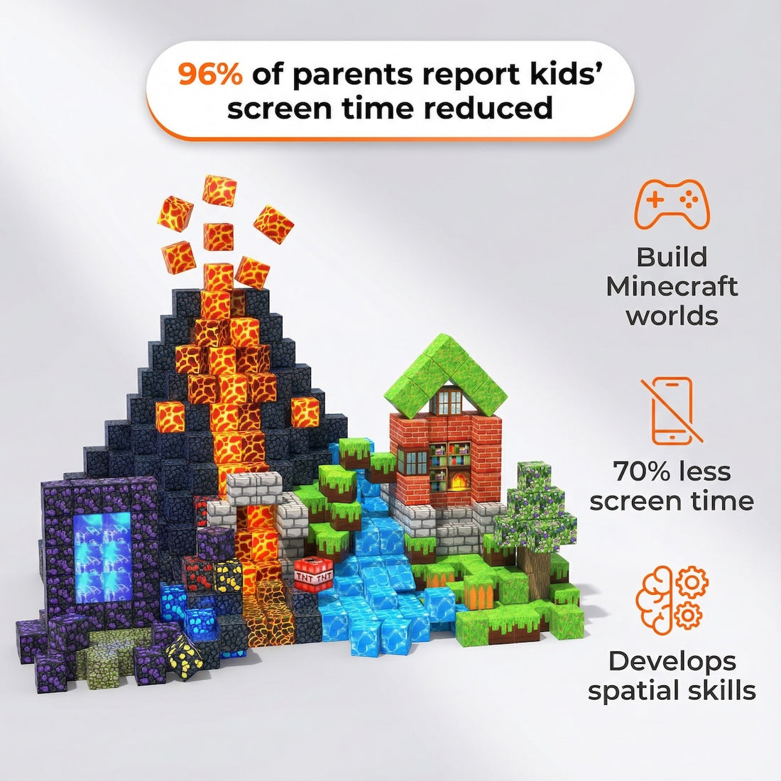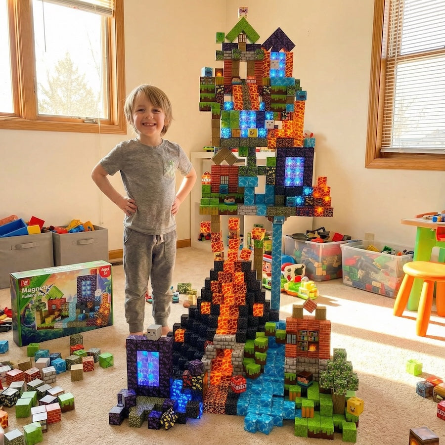 Minecraft-Inspired Building • Hands-On Screen-Free Play • Endless Creative Possibilities • Strong Magnetic Hold